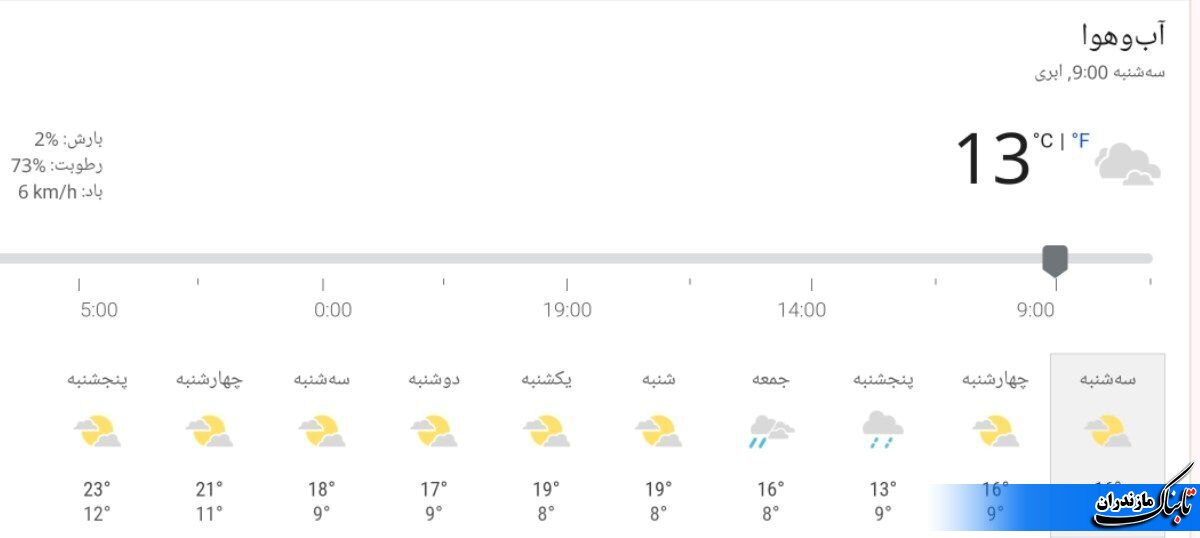 به گزارش تابناک مازندران ، آخرین وضعیت جوی و متوسط دمای مازندران تا هفته آینده به این شرح است: