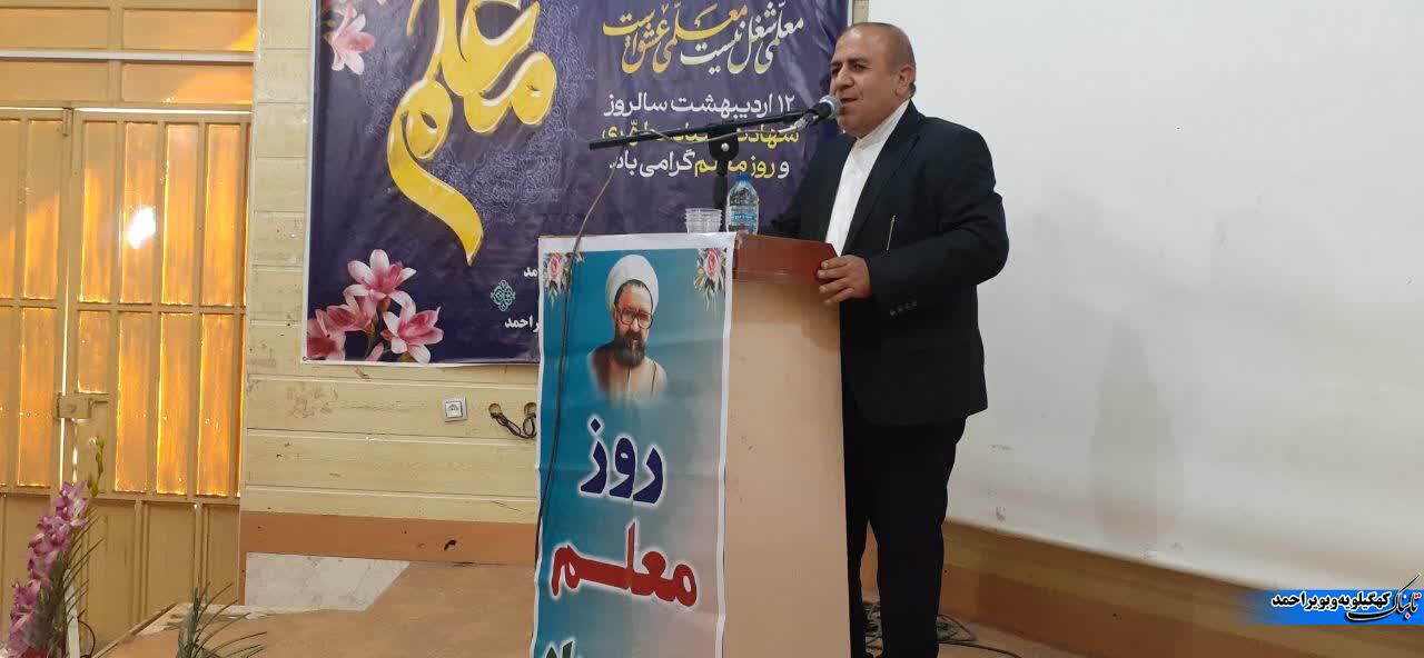 در ادامه این مراسم مدیر کل سابق آموزش و پرورش استان ضمن تبریک روز معلم گفت: این روزها همه دنبال قافیه و ردیف هستند که در مورد مقام معلم چه بگویند در حالی که پیامبر اکرم صلّی الله علیه و آله فرمودند: خدا و فرشتگان حتی مورچه در لانه اش و ماهی در دریا بر کسی که به مردم خیر و نیکی میآموزد، درود میفرستند. ولی نه برای هر معلمی بلکه برای معلمی که در کلاس علم نافع تدریس میکند.
