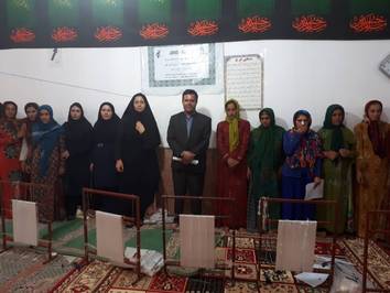 مهران بالان در کلوار به آموزش بافت تابلو فرش به دختران این روستا می پردازد.