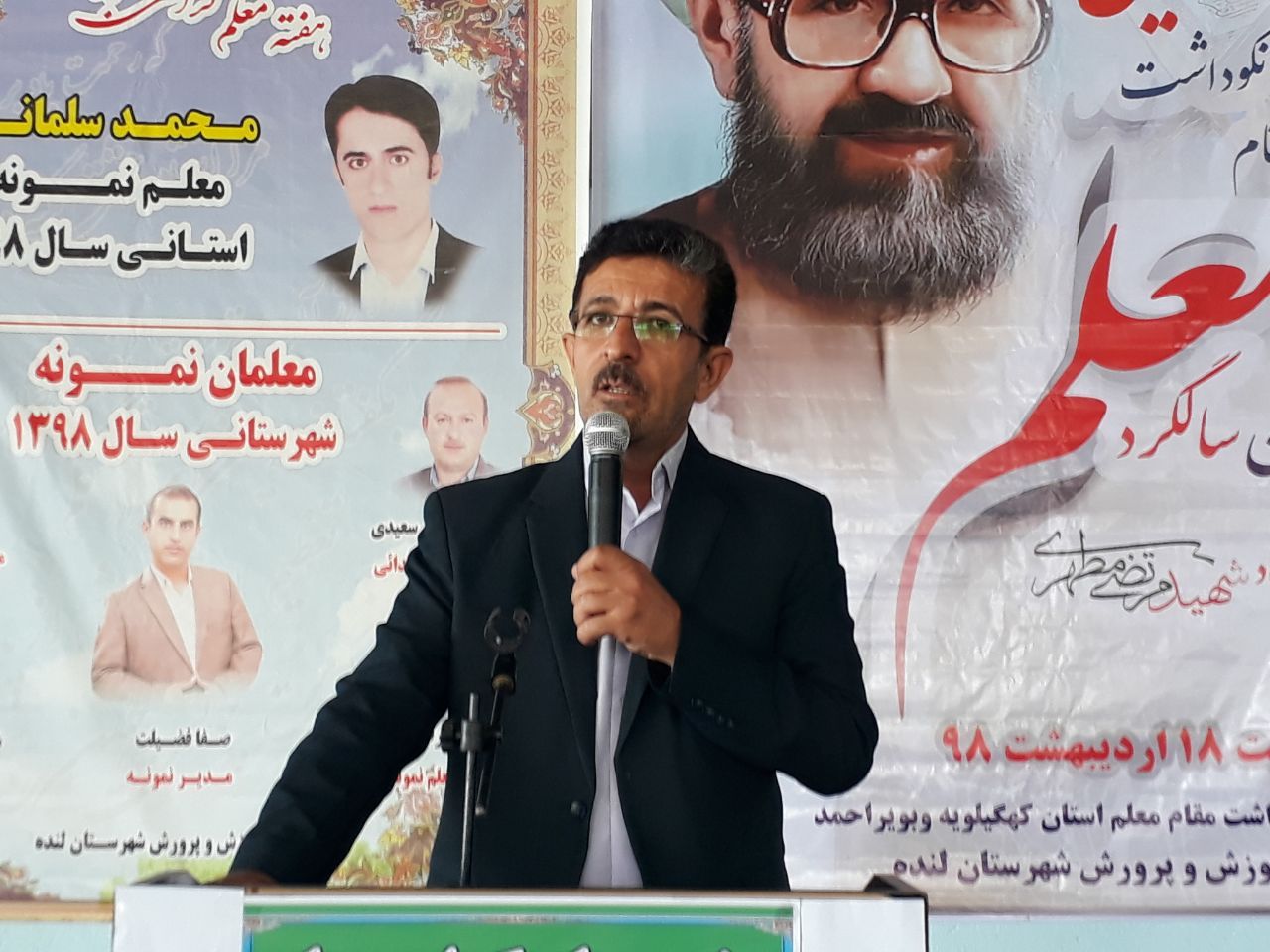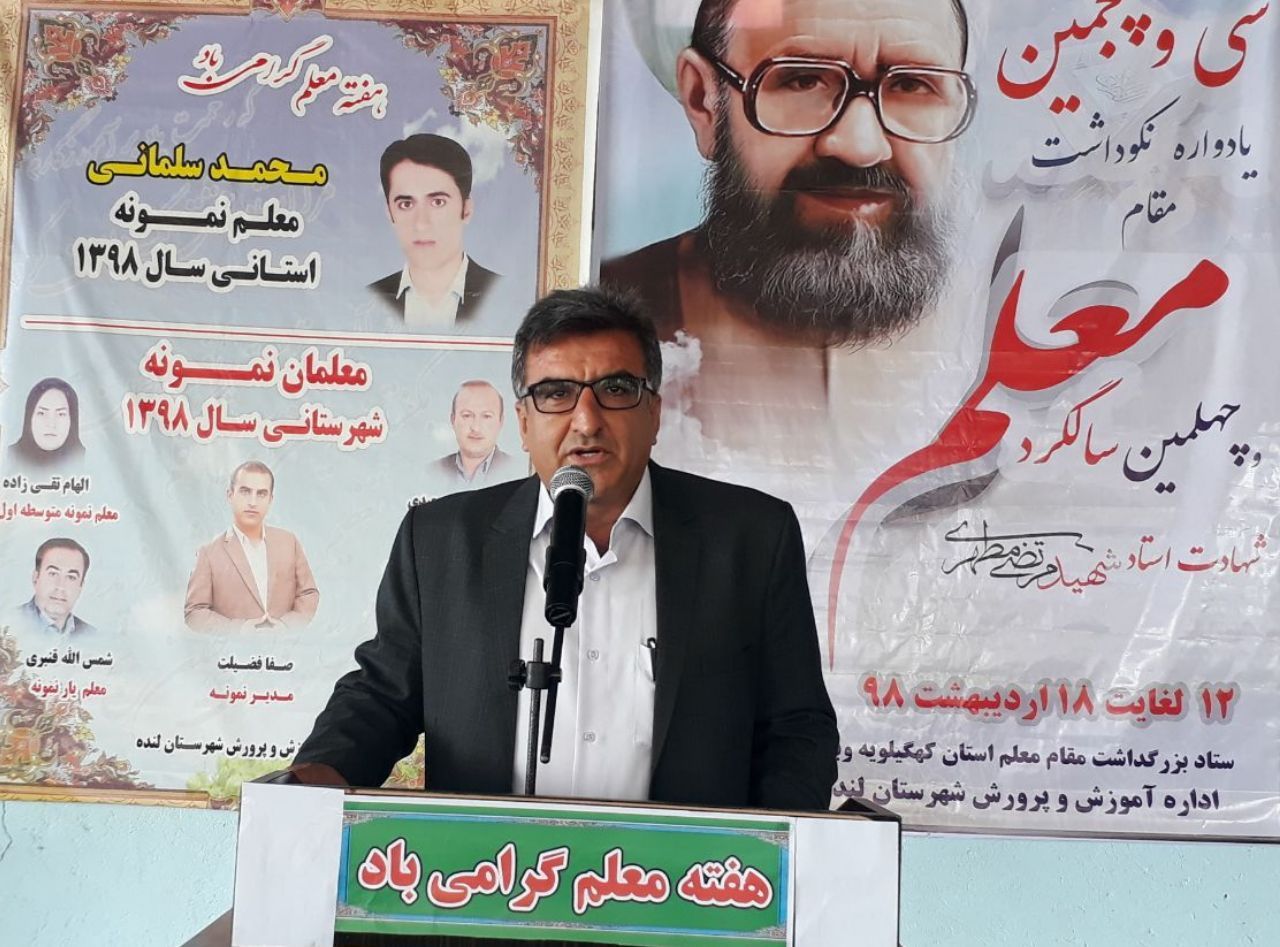 تابناک کهگیلویه و بویراحمد - فرهنگی ، همزمان با هفته بزرگداشــت مقام معلم مراسمی باشکوه در فضای متفاوت با حضور مسئولین، مهمانان استانی و همراهی اکثریت فرهنگیان شهرستان برگزار شد. شاید تنها آئین هایی که در ان دست بوسی به تمام معنا و در انظار مردم صورت می گیرد اما ذره ای بوی تملق و چاپلوسی نمی دهد ، همین آئین های گرامیداشت روز معلم است.