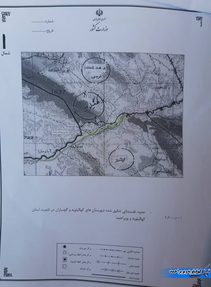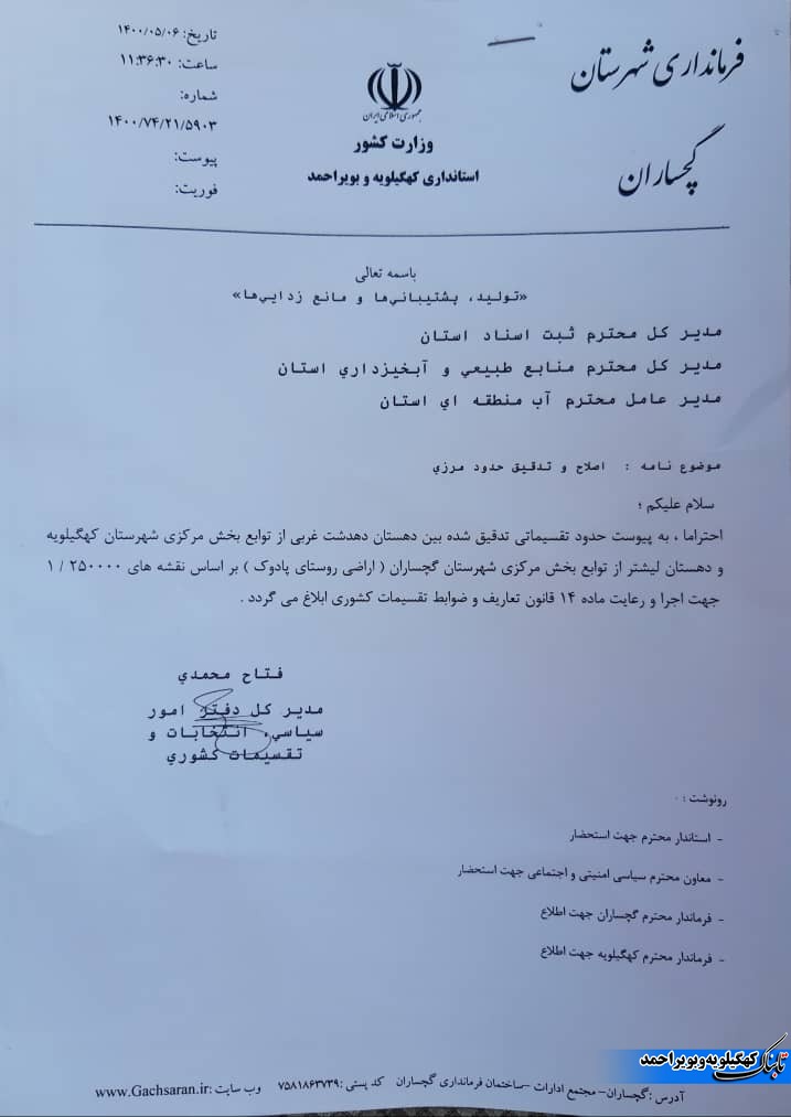 نامه ارسالی از طرف استانداری کهگیلویه و بویراحمد به فرمانداری گچساران در خصوص محدوده اصلاح و تدقیق حدود مرزی